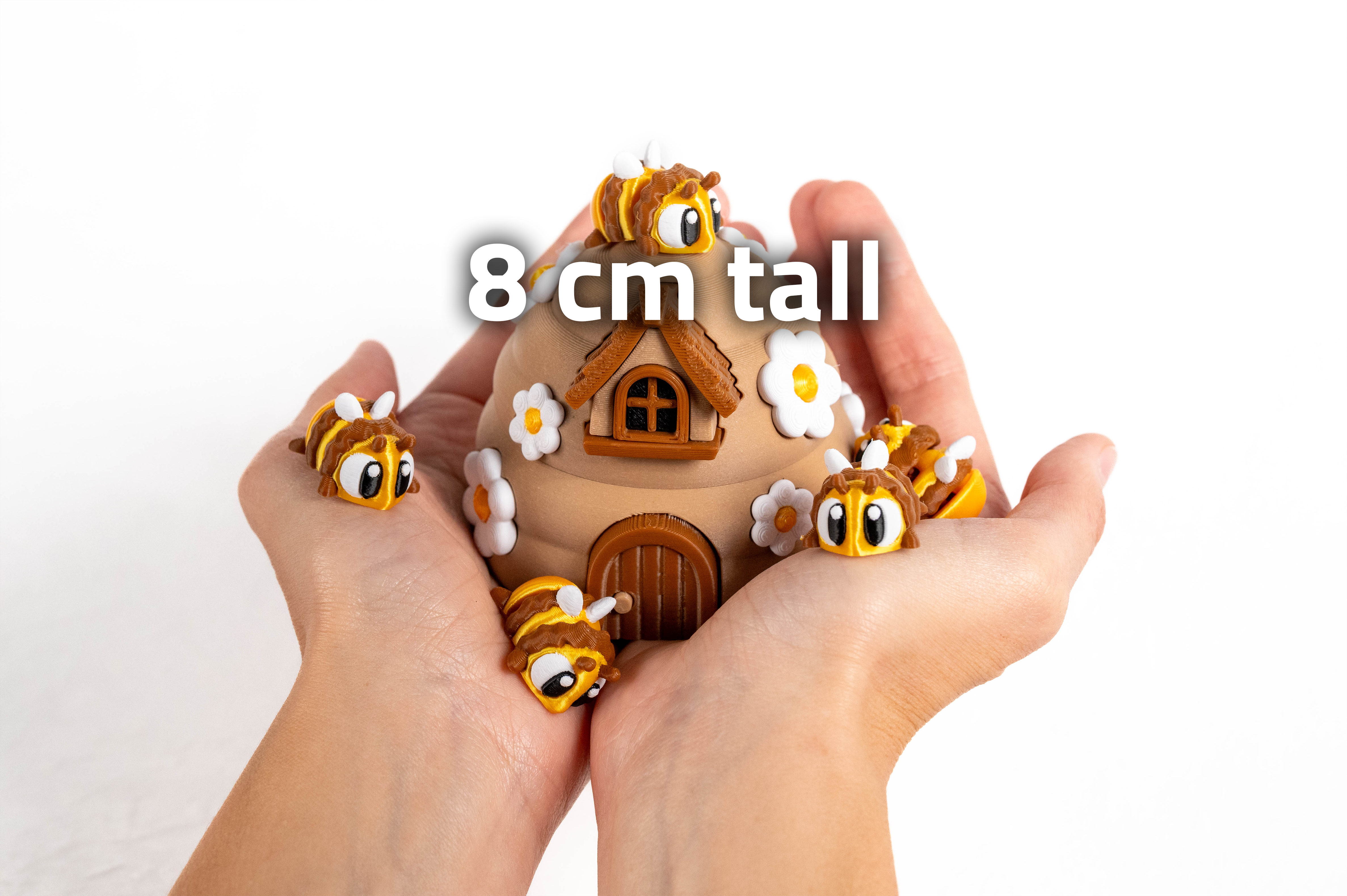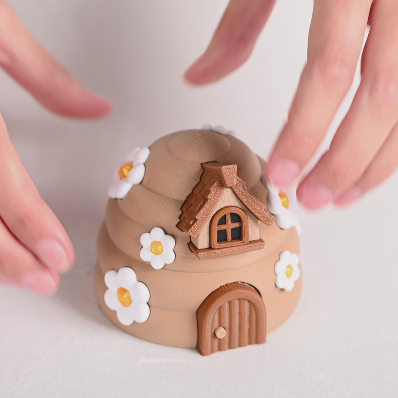 These fully articulated fidget toys, Beehive & Bees, feature a flexible body adorned with delicate details. The beehive opens and hides your little bees that can be placed all around it as amazing decoration.